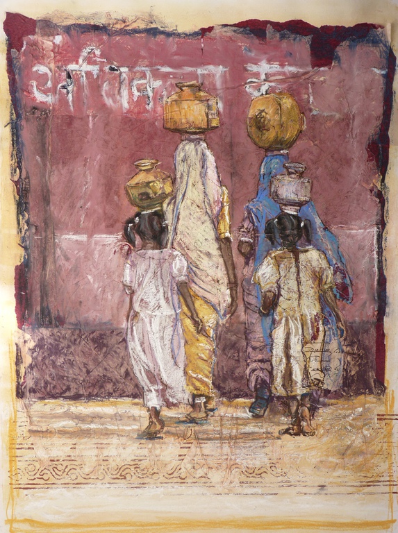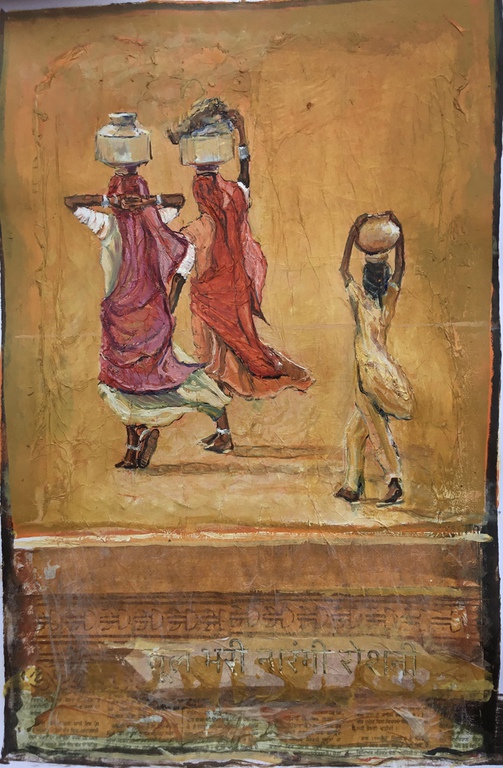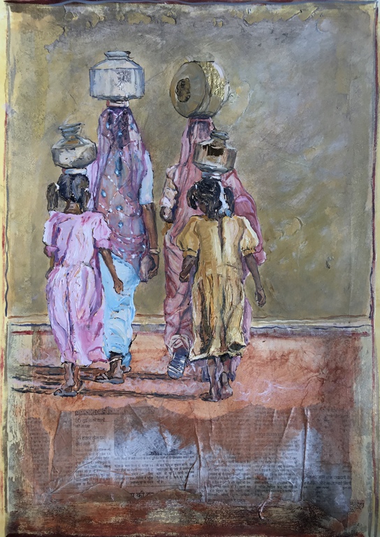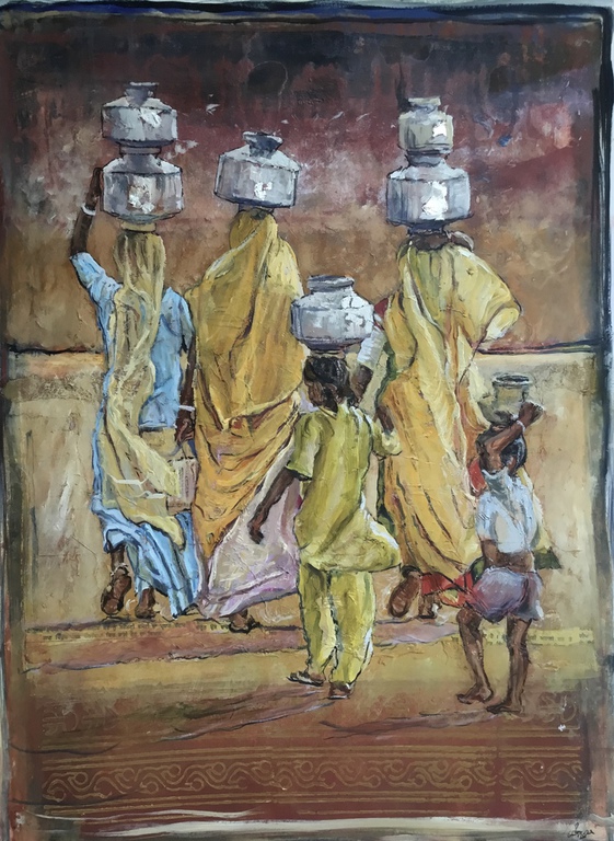In rural communities, girls are denied the opportunity to reach their full potential. Their education is crippled by water-related issues, with more and more girls dropping out of school to support a basic human need. Whether it is to fetch water or to care for siblings whilst their mothers are fetching water, girls are failing to obtain the education they need. In Rajasthan ,where most of my paintings are based, 59 percent of girls drop out of school before the finishing the fifth grade (age 11yrs)